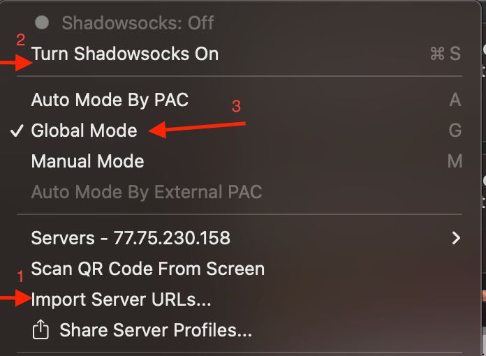 Откройте программу. Её иконка в виде самолётика появится в верхнем меню (слева от часов). В меню программы выберите «Import server URLs».